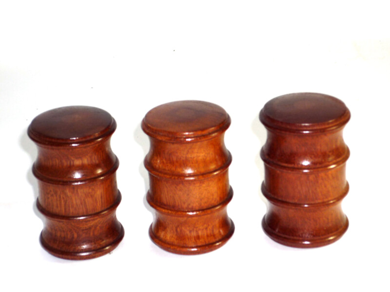 Fine pieces of design and craftsmanship, a set of 3 palm gavels in rich old nicely coloured mahogany wood, a trio of double ended hammer head palm gavels, rich handsome, purpose made double ended, each has good grain and colour but none are identical as they are all made individually by hand in my workshop in the heart of England, Shropshire. Will fit in an mason’s apron pocket.