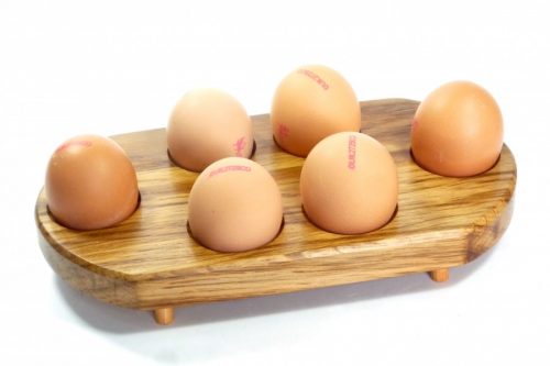 Handmade, hand cut, one piece wooden egg stand with no joins in one solid piece of wood with choice of woods and feet in English Yew. Great size, ideal for 6 eggs. Eggs should not be kept in a fridge so pop them on to your stand. Made to suit all sizes of free range eggs. Eggs used are from a mixed size box and are not included.