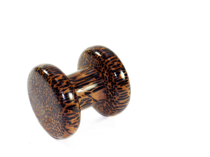 A stylish very individual, wooden handmade hand-held door knocker in the style of the mail carriers from 1863 palm gavel.