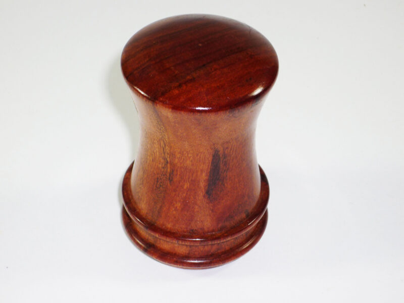 Handmade palm gavel, totally unique, made from seldom seen Rhodesian Teak wood with great grain, reddy brown in colour with black streaks, strong and weighty with a great sound. Each of my palm gavels is different, designed and made by me, unique and beautifully finished with beeswax polish to let the natural colour of the wood shine through. Smooth to the touch with its own natural lustre.