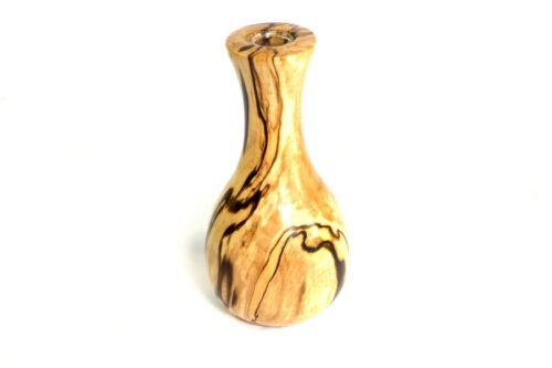 Individually made and totally unique, gorgeous bud vase in seldom seen English Spalted Hornbeam with gorgeous grain. Inside the bud vase is a special tailor made fitted glass inner tube to be filled with water to display your bud or bloom beautifully. Bud vases are great for one hydrangea, single rose, a couple of tulips, an iris or carnation, a small sunflower, peonies, bird of paradise or a few peonies or wherever your imagine takes you. Perfect for those individually picked flowers from the garden to add beauty to your room every day.Bring in the cheer to a room, a thing of beauty is a joy forever.