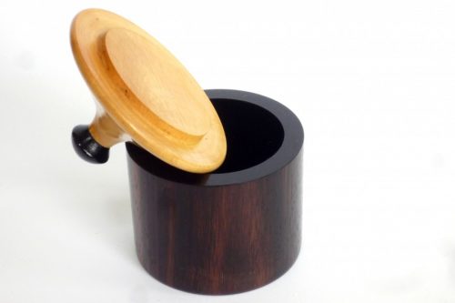 A handmade wooden pot beautifully unique, made from old recycled 1940’s Ebony dark and rich with gorgeously grained lid in English Boxwood. Stylish individual, this looks like a little hut, handmade in my workshop in Shropshire in the heart of England from wood with its own history. This pot is great to own, a cheeky statement piece for keepsakes – great for keeps, great for wood lovers and aficionados everywhere. A great unique present for someone special who appreciates wood, a great addition to anyone’s home or a special treat for yourself. There is only one and when it has gone it has gone for good. Designed and made by me, not mass produced, each of my pots is different, finished with beeswax polish to let the natural colour of the wood shine through. A great present for a special birthday, anniversary, housewarming or graduation or birthday present. Somethings are just so beautiful you have to have them. A work of art is a joy forever.